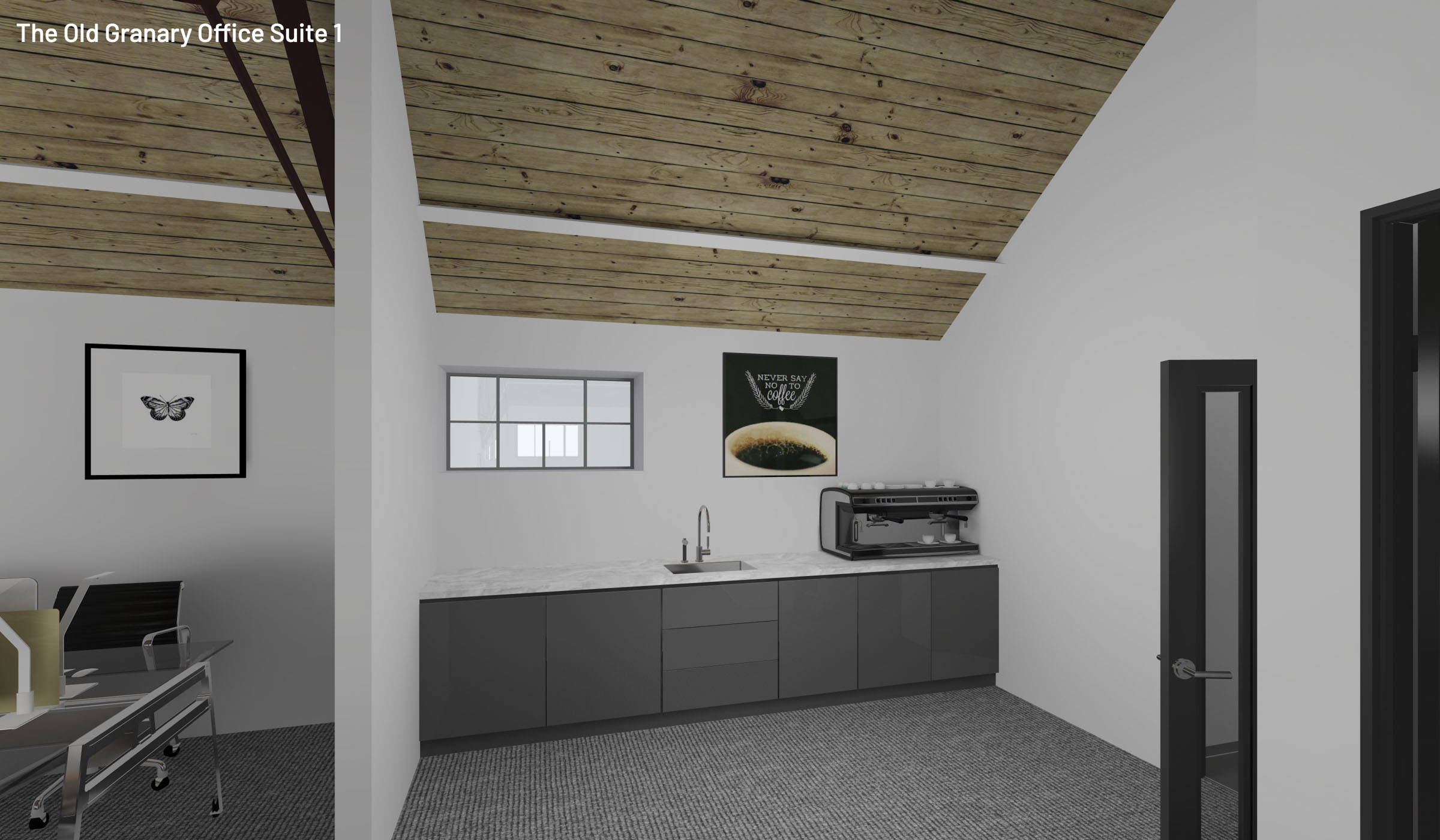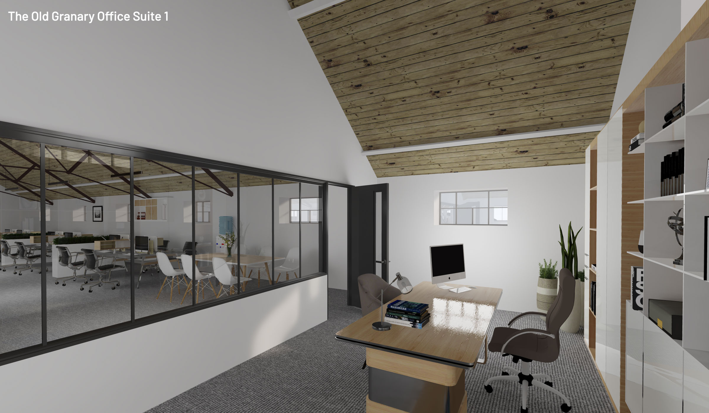 This modern recently renovated first floor office is split across three room. A main open-plan office, a meeting room and a separate end office. There is an additional kitchen area and toilet facilities.