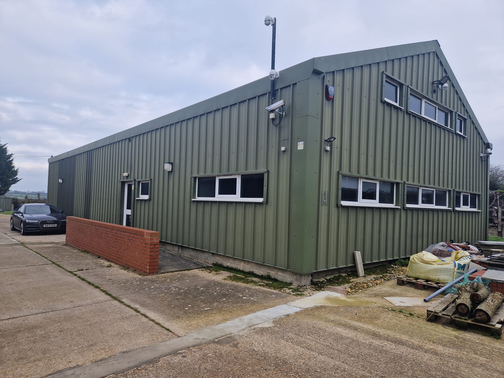 1,600sqft warehouse and 1,936sqft office to let on a very secure site. The warehouse has roller shutter doors (3.3m in height and 3.6m wide), LED lighting, a power floated concrete floor and three phase electric.