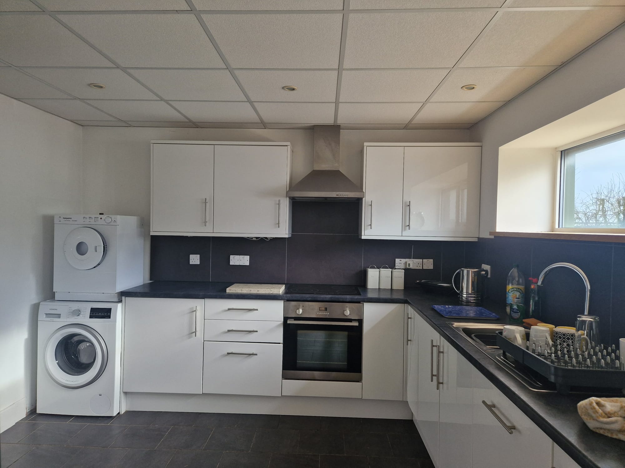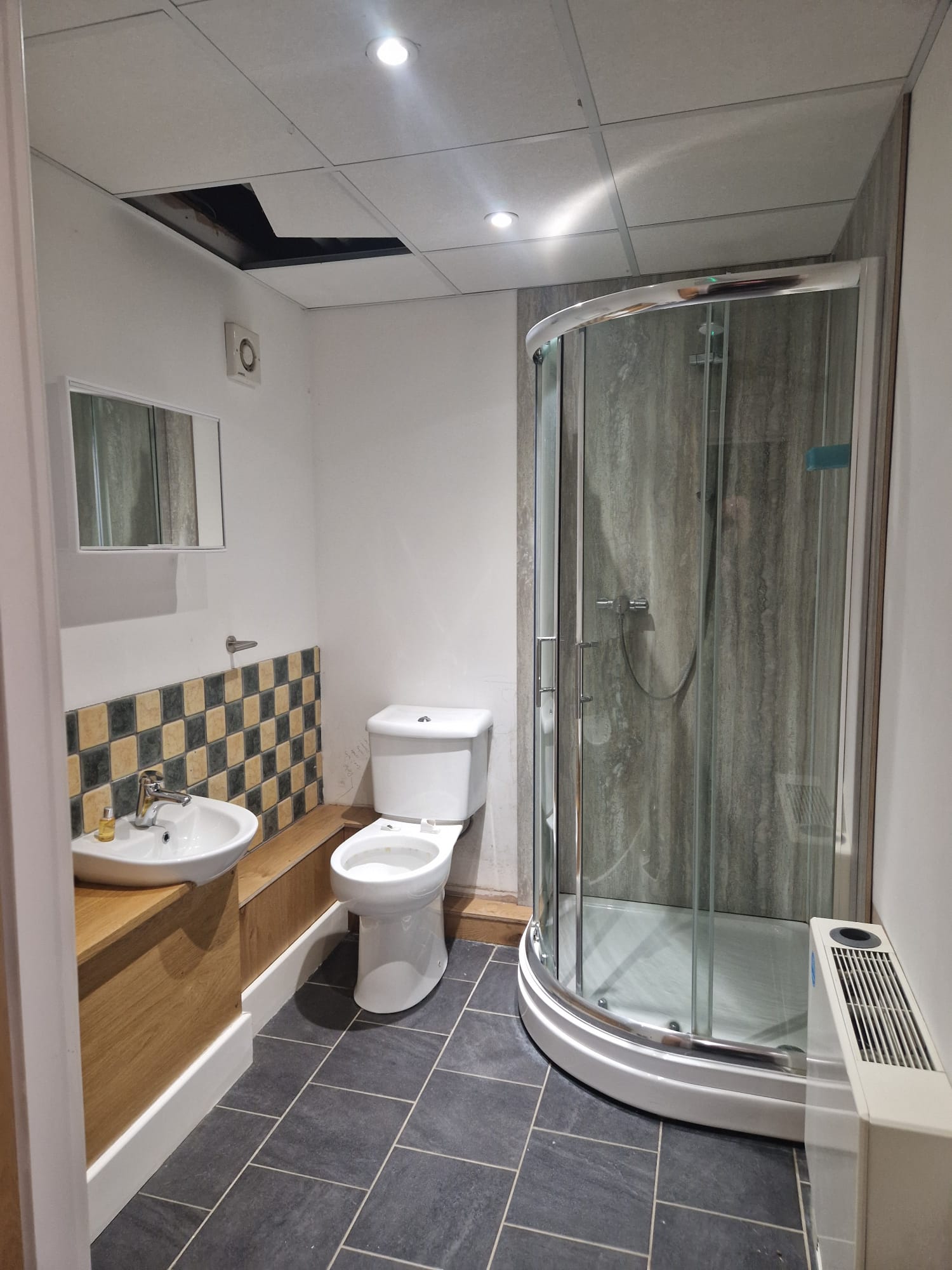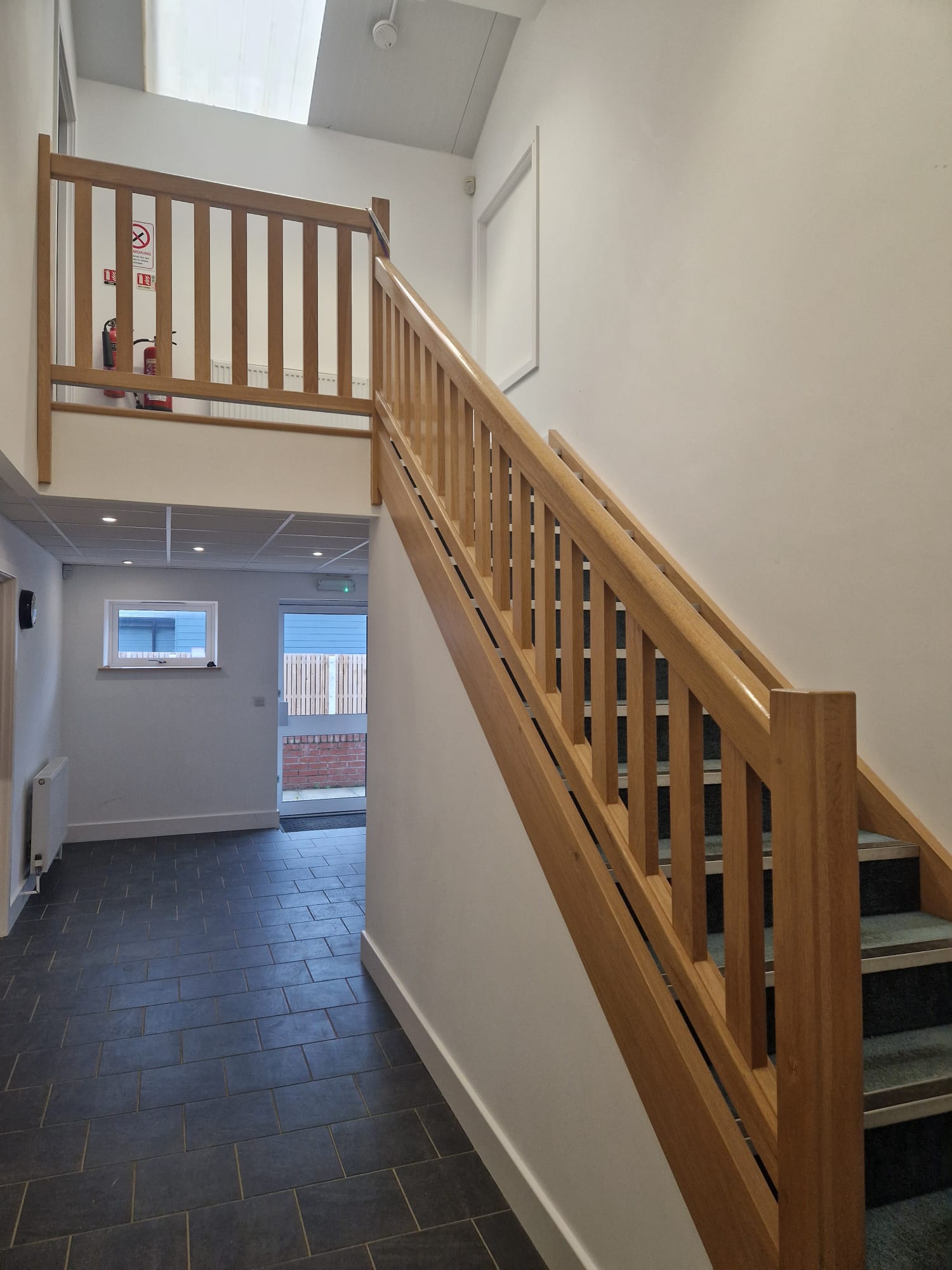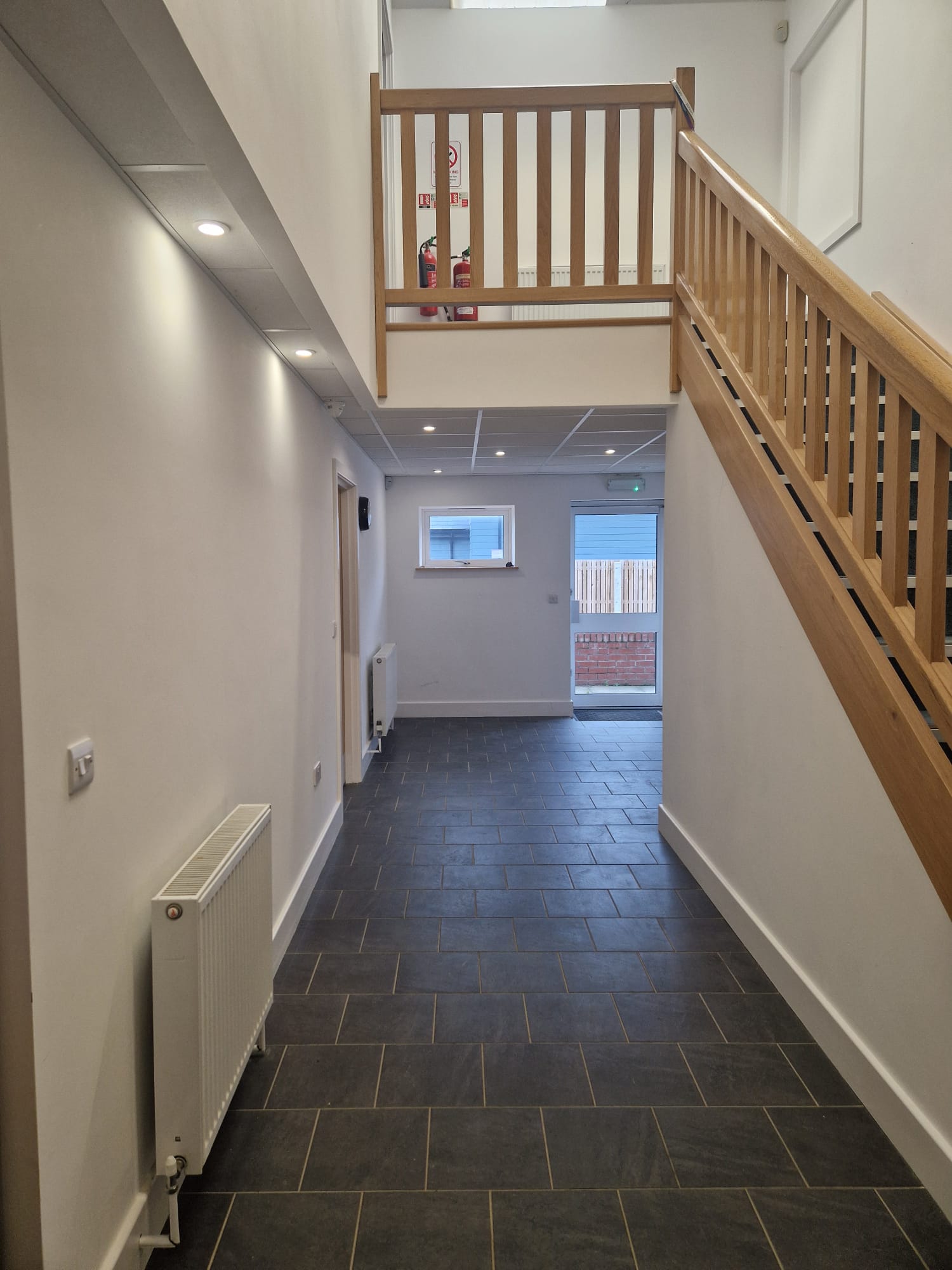 The office space is over two floor. On the ground floor there is a reception area, office, kitchen, shower and toilets facilities. The second floor has an open plan office.