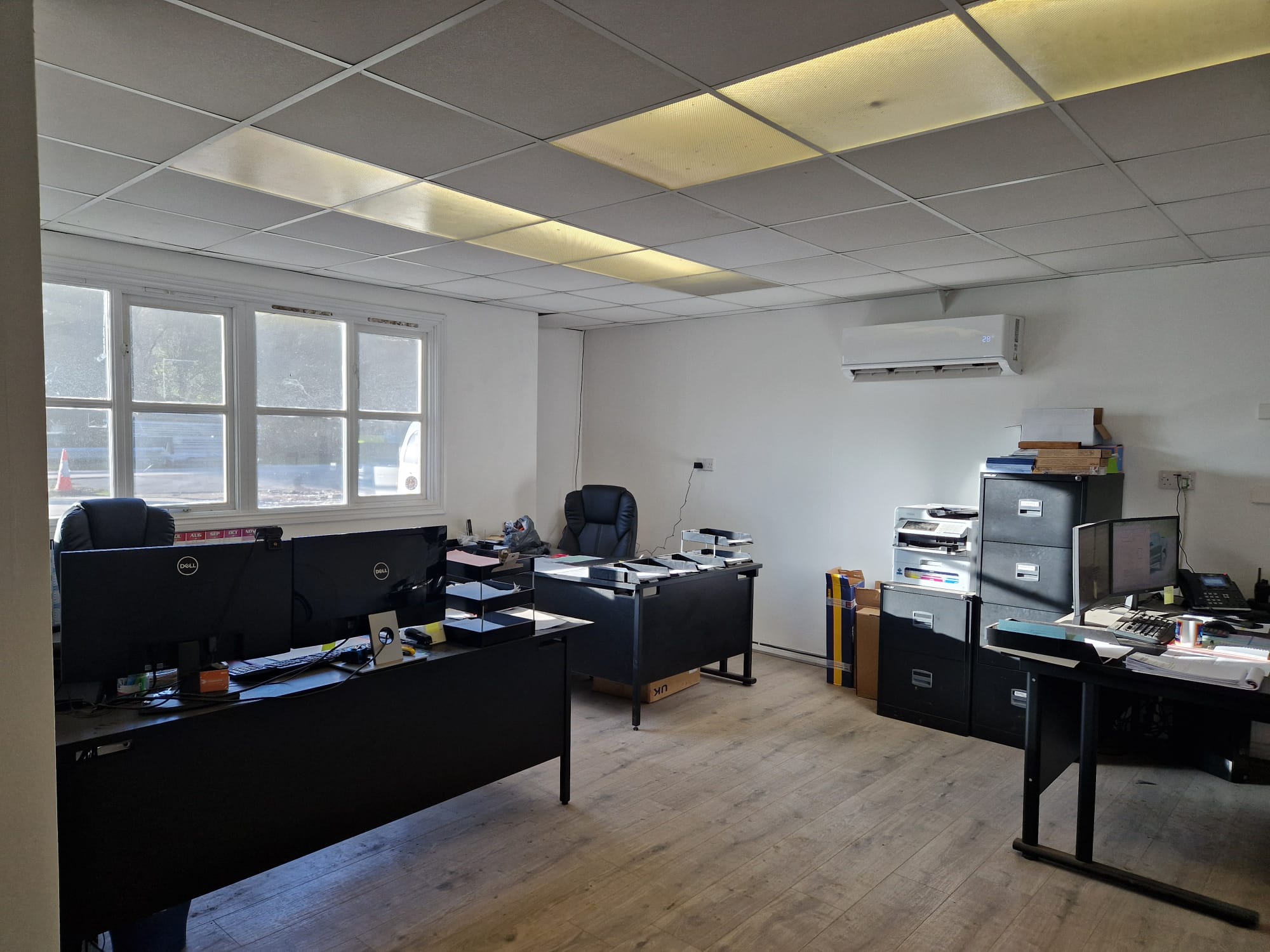 1,000 sq ft warehouse/office to let on a secure gated site with CCTV. The unit has LED lighting, three phase electrics, roller shutter door, Personnel door and concrete floor.