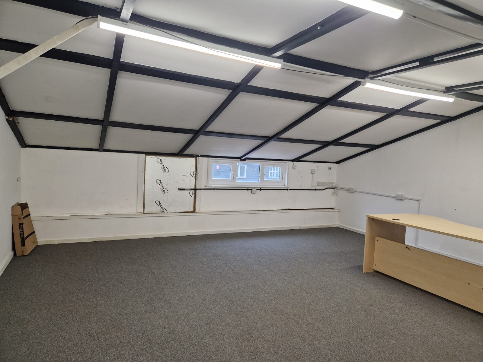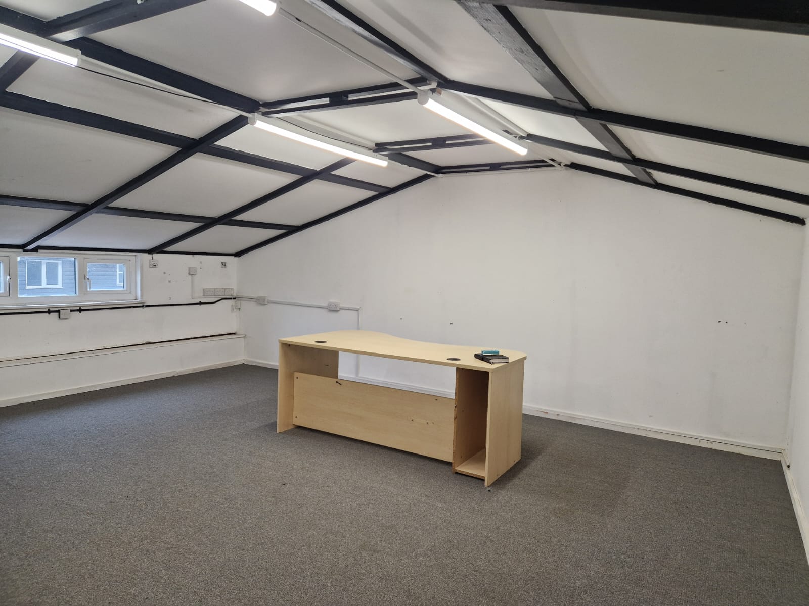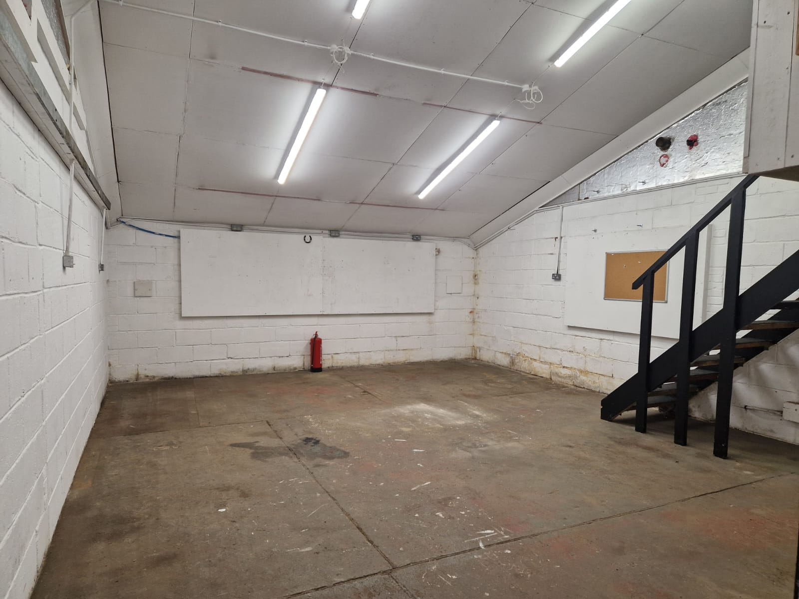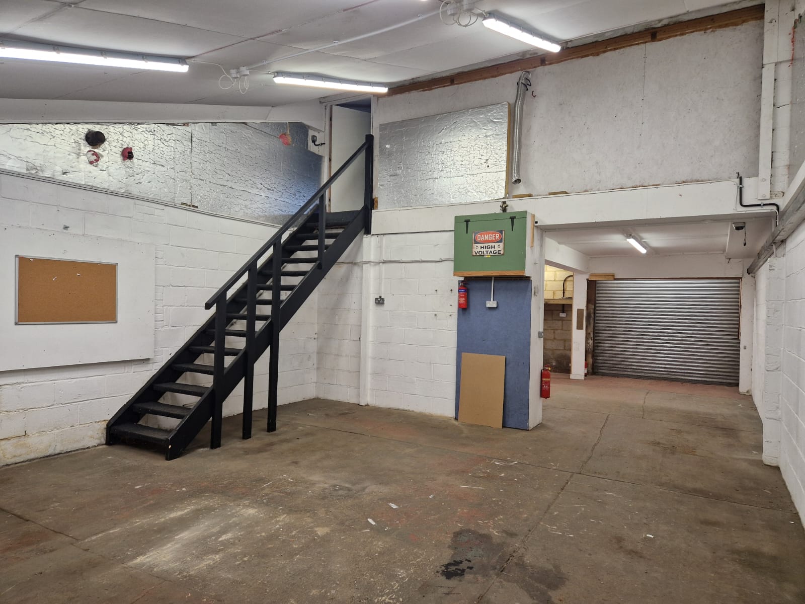 Approx 1,200 sqft warehouse to let including mezzanine office space (371sqft) featuring Roller Shutter door, Personnel Door and a concrete floor.