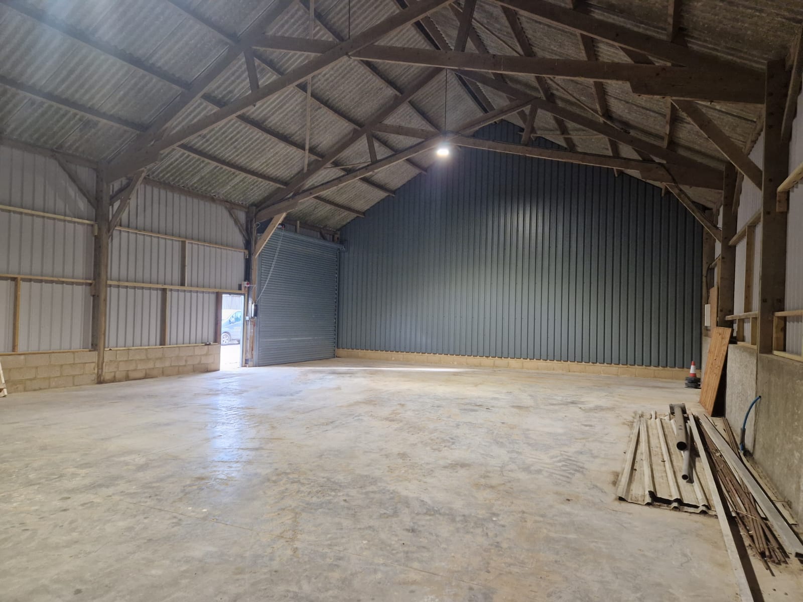 2,400 sqft warehouse to let on a secure rural site. The warehouse has an electric roller shutter door, LED lighting, a concrete floor and three phase electrics.