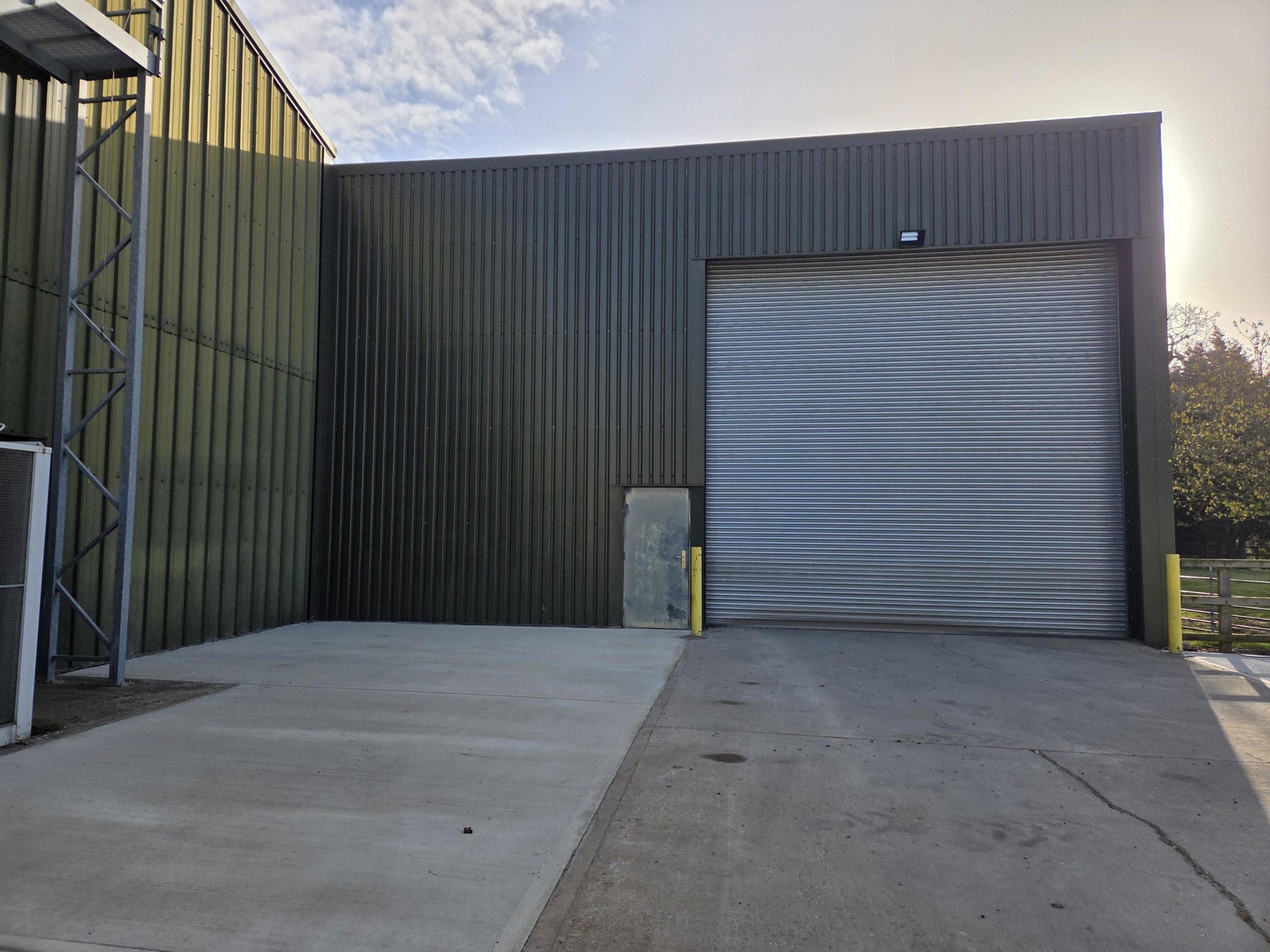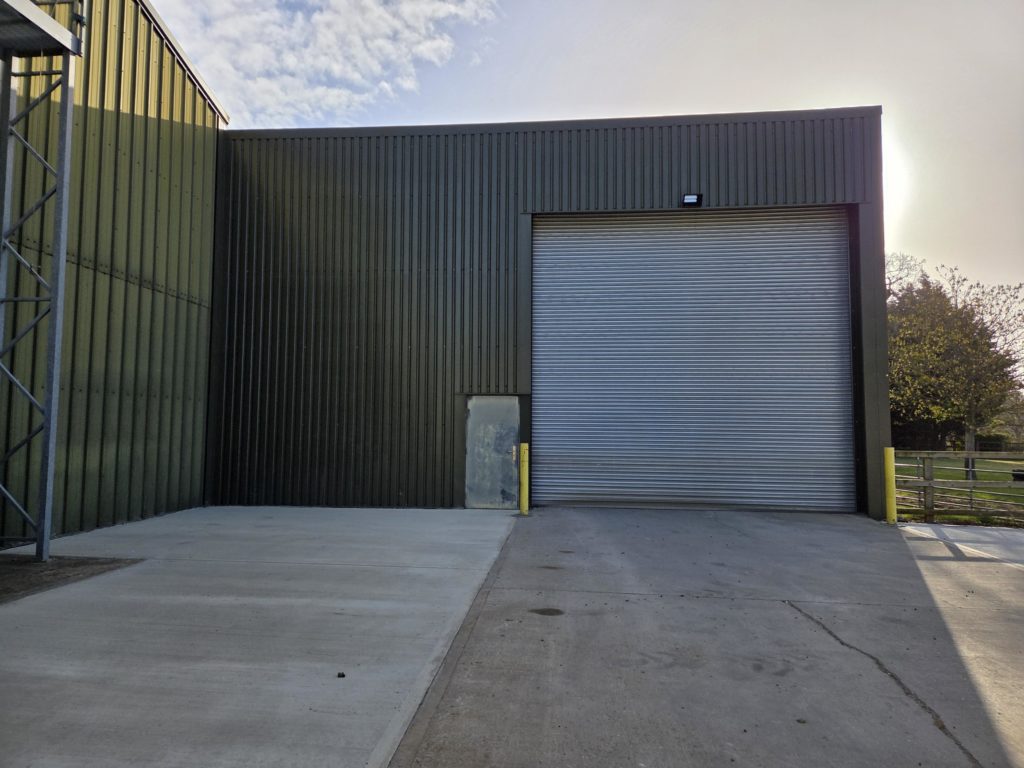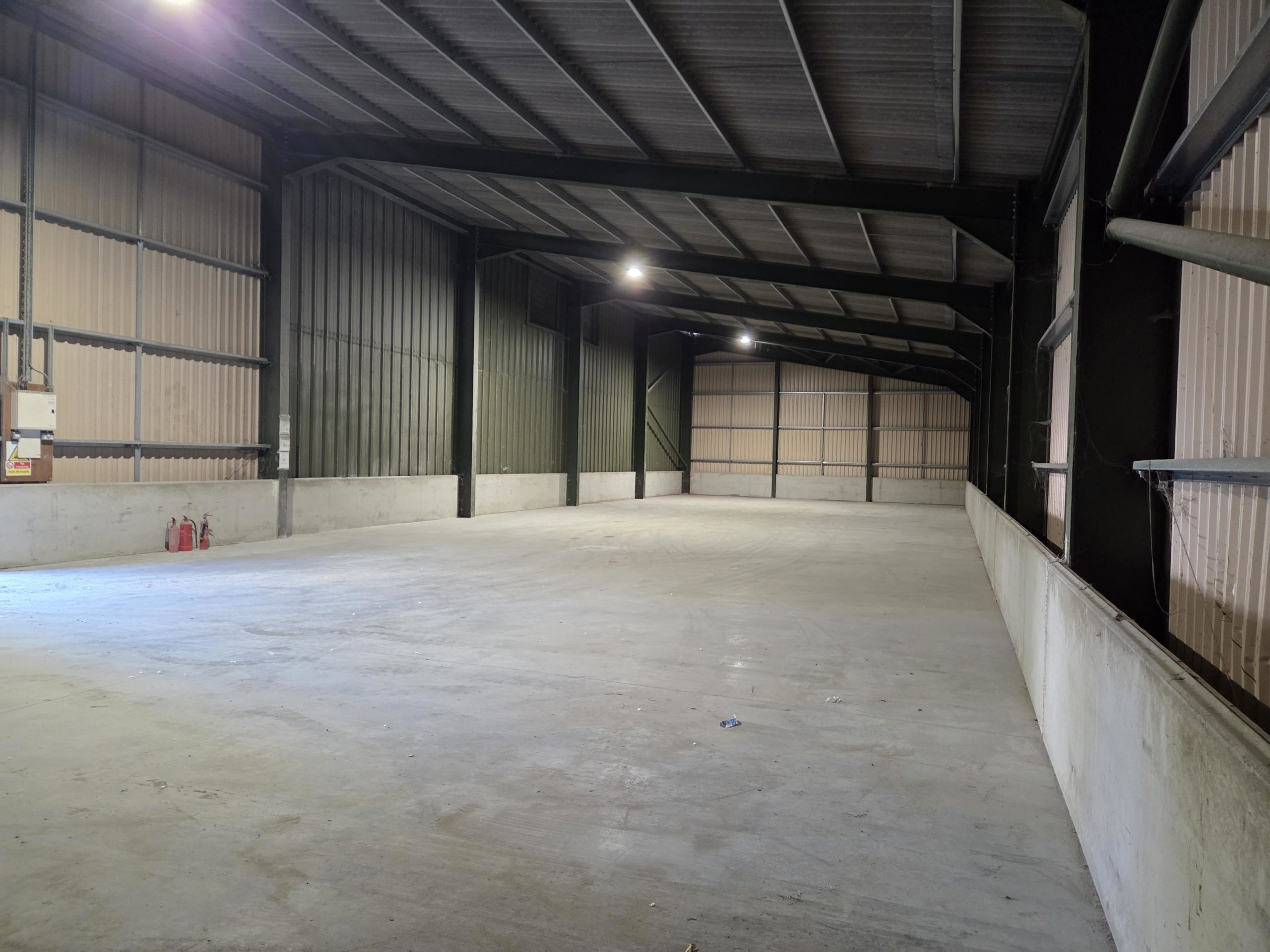 5,000 sq ft warehouse to let on a secure rural site with electric roller-shutter door and a concrete floor.