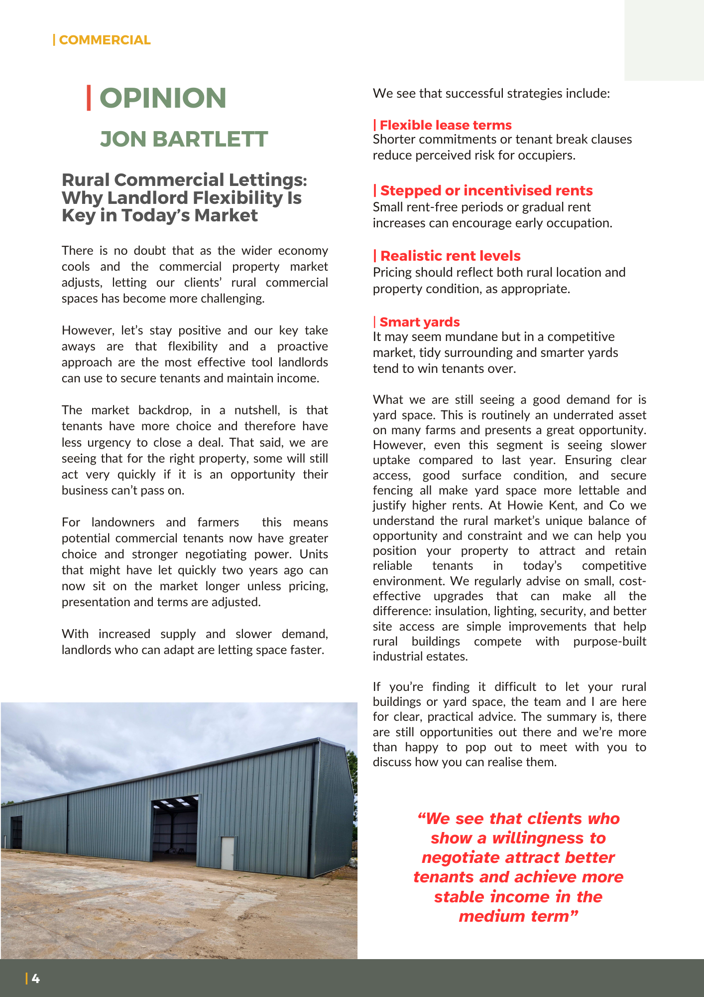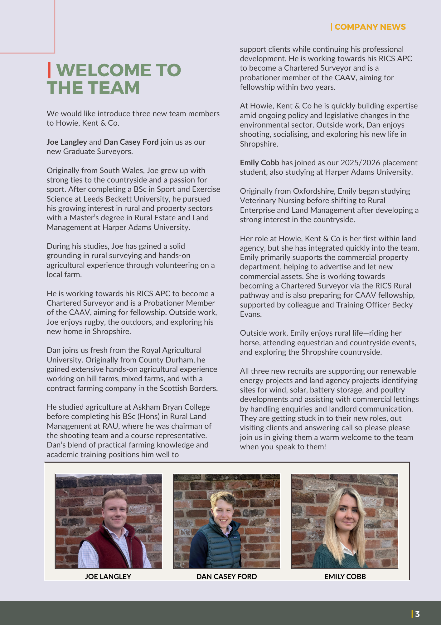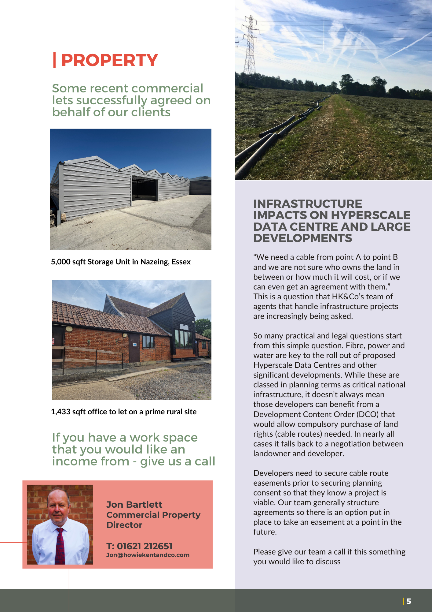 In this issue we welcome three new members to the Howie, Kent and Co team, discuss demand for poultry sites and Power Purchase Agreements. We have also included an update on our project with Power Park developer Relode and discuss how landlord flexibility is key in today’s commercial lettings market.